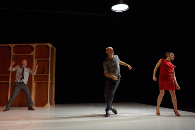 Anatomía pública es una instalación coreográfica, un cuadro en movimiento en el que el habla, la canción, la danza, el sonido y la imagen chocan, contrastan, se refuerzan y se contradicen entre sí.