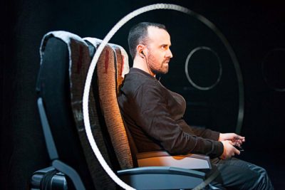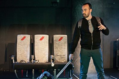 …And breathe normally plantea una situación vivida de manera repetida por el autor del proyecto: la necesaria vuelta a casa tras la vivencia reciente y cercana del horror. Los atentados de Bruselas en marzo de 2016 -tras la experiencia reciente de los de París en noviembre de 2015 y los que vendrían después en Niza o Londres- sirven así de detonante para este espectáculo: la experiencia cercana al epicentro de la violencia, tras la cual es inevitable la huida y la expansión de la mirada hacia el fanatismo y las pulsiones presentes en la sociedad europea –especialmente, su juventud- y en las paradojas que nos habitan: tolerancia-intransigencia, individualismo-proyecto común, reflexividad crítica-autoritarismo… El contexto de aislamiento que inducen los aeropuertos permite la puesta en paréntesis de la realidad espacio-temporal aún latente para aplicar sobre ella el análisis que la lucidez y la emoción del tránsito aéreo provoca. Por ello, es el avión (vehículo de escape unas veces, vehículo de unión otras, pero también vehículo para el horror en los atentados que marcaron el inicio de la época actual) el motivo fundamental que vertebra la dramaturgia del proyecto.