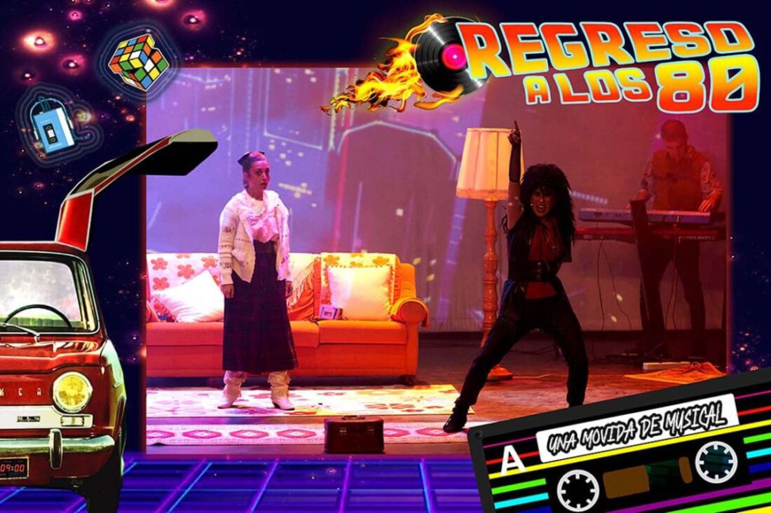 Regreso a los 80, una movida de musical en clave de comedia acompañado de las mejores canciones del pop español de los 80. ¿Qué pasaría si Marty McFly en lugar de viajar al pasado de Hill Valley, viajara a la Movida?. Saltarás de la butaca, cantarás, bailarás y fliparás en colores… ¡alucina vecina!… Un espectáculo musical, tributo a una de las épocas más movidas.