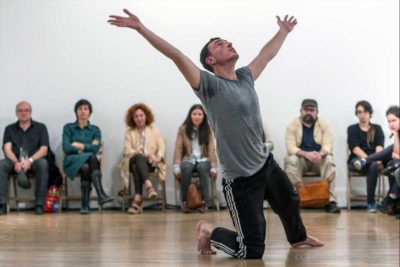 Sudando el discurso es una conferencia performática presentada por el coreógrafo y bailarín Aimar Pérez Galí.