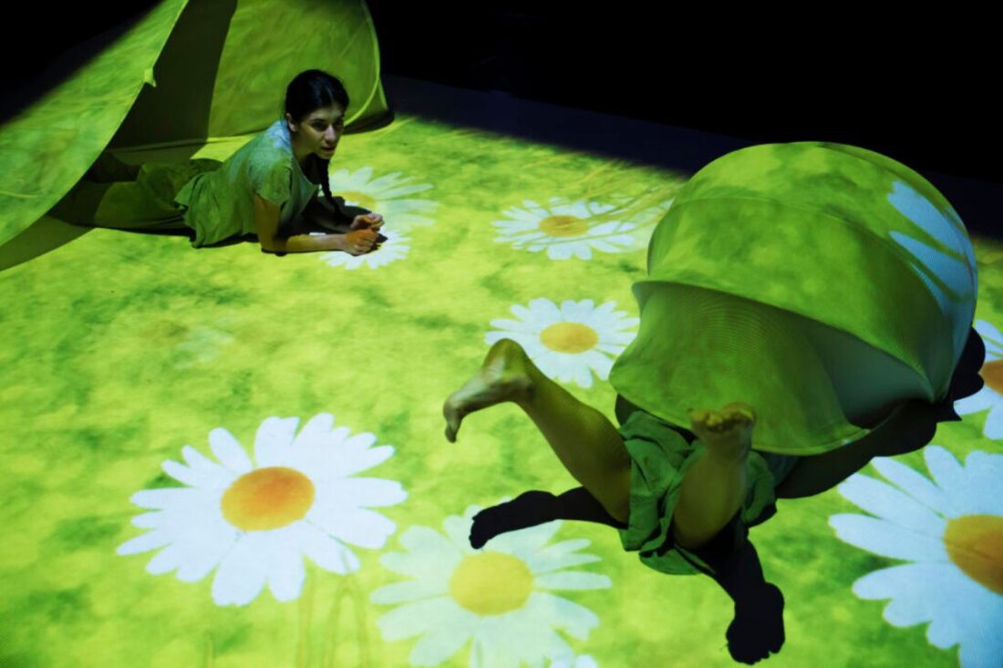 Cada detalle de la naturaleza se convierte en una inspiración, una oportunidad para explorar y crear. Con naturalidad, las intérpretes traducen estos encuentros en movimientos de danza, una gestualidad que evoca la belleza y la delicadeza del mundo natural. Manipulando esculturas de tela y tejidos ligeros, dan vida a una serie de paisajes fantásticos, construyen y desmontan refugios y escondites en un juego creativo de formas por habitar.