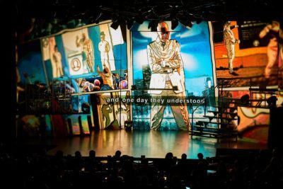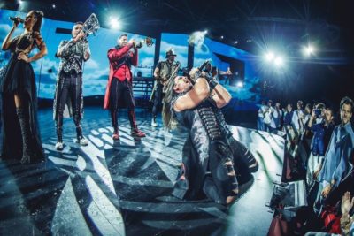 Segundo acto: Un impactante y emocionante show, con los mejores temas de la historia de la música interpretados en directo, interpretados por un espectacular elenco artístico, combinado con mapping y luces envolventes.