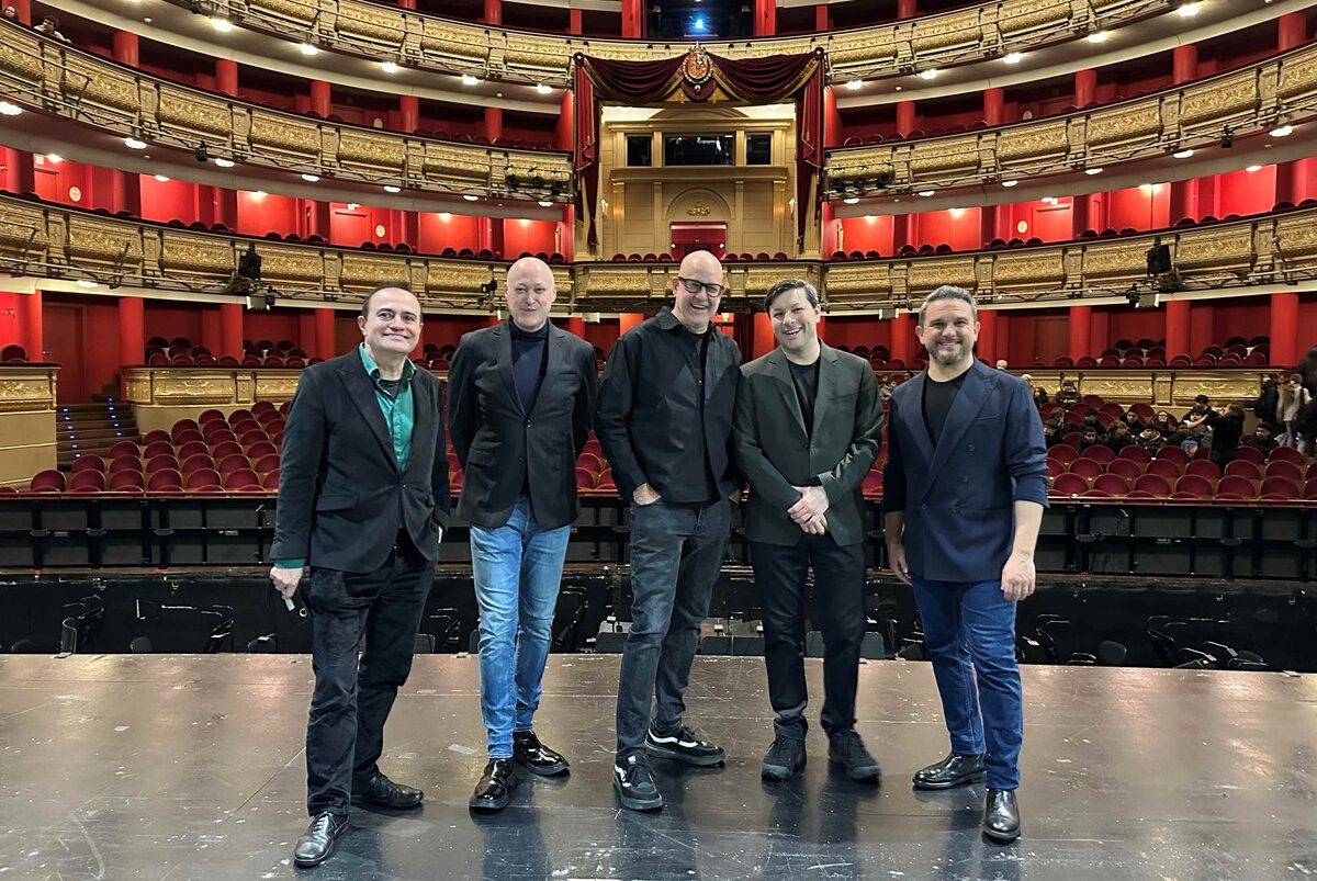 Joan Matabosch (director artístico del Teatro Real), José Antonio López (barítono), Àlex Rigola (libretista y director de escena), Christian Karlsen (director musical) y Moisés Marín (tenor). Fotógrafo: © Javier del Real | Teatro Real