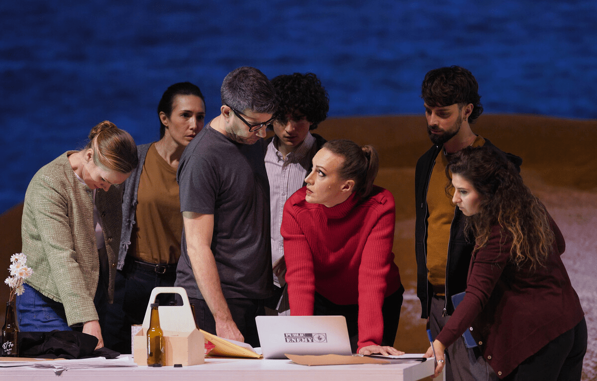 La acción de Enemigo del pueblo se sitúa en una apacible costa mediterránea, en los terreros, que se va oscureciendo con los conflictos que van enrevesando la trama. De fondo hay un mar que también va evolucionando al ritmo que pide la historia. No es un interior o una casa. Es una localización universal en el espacio y también en el tiempo porque el libreto, en este caso, trae la producción a un momento actual, pero podría usarse desde otro tiempo y lugar. Esa universalidad del título nos trae también esos conflictos de todos, de siempre, hasta un hoy plagado de aquello que ya se cuestionaba Ibsen a finales del siglo XIX. La manipulación, el peso de las mayorías, los imperativos del dinero, la opinión pública, la búsqueda de la verdad. Por algo, este autor es uno de los padres del teatro moderno y la revisión de sus títulos es una potente fuente de reflexión sobre el individuo y su papel en la sociedad. Sobre los lugares comunes que en el devenir de las sociedades ocupan los dilemas morales y los conflictos sociales.